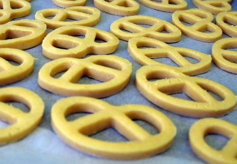 Egy kis szív alakú sütivágóval kivágjuk a szíveket az állott ...